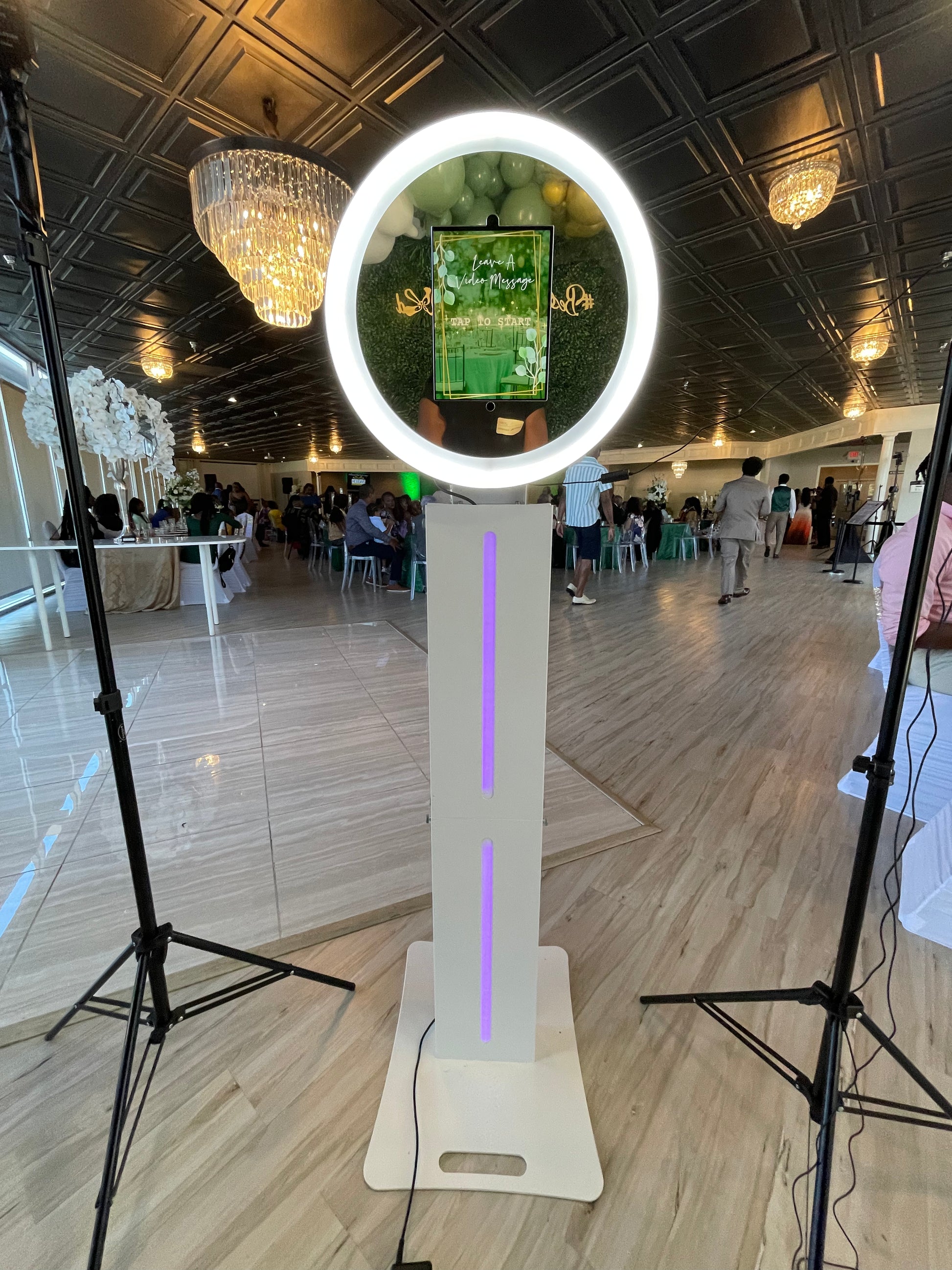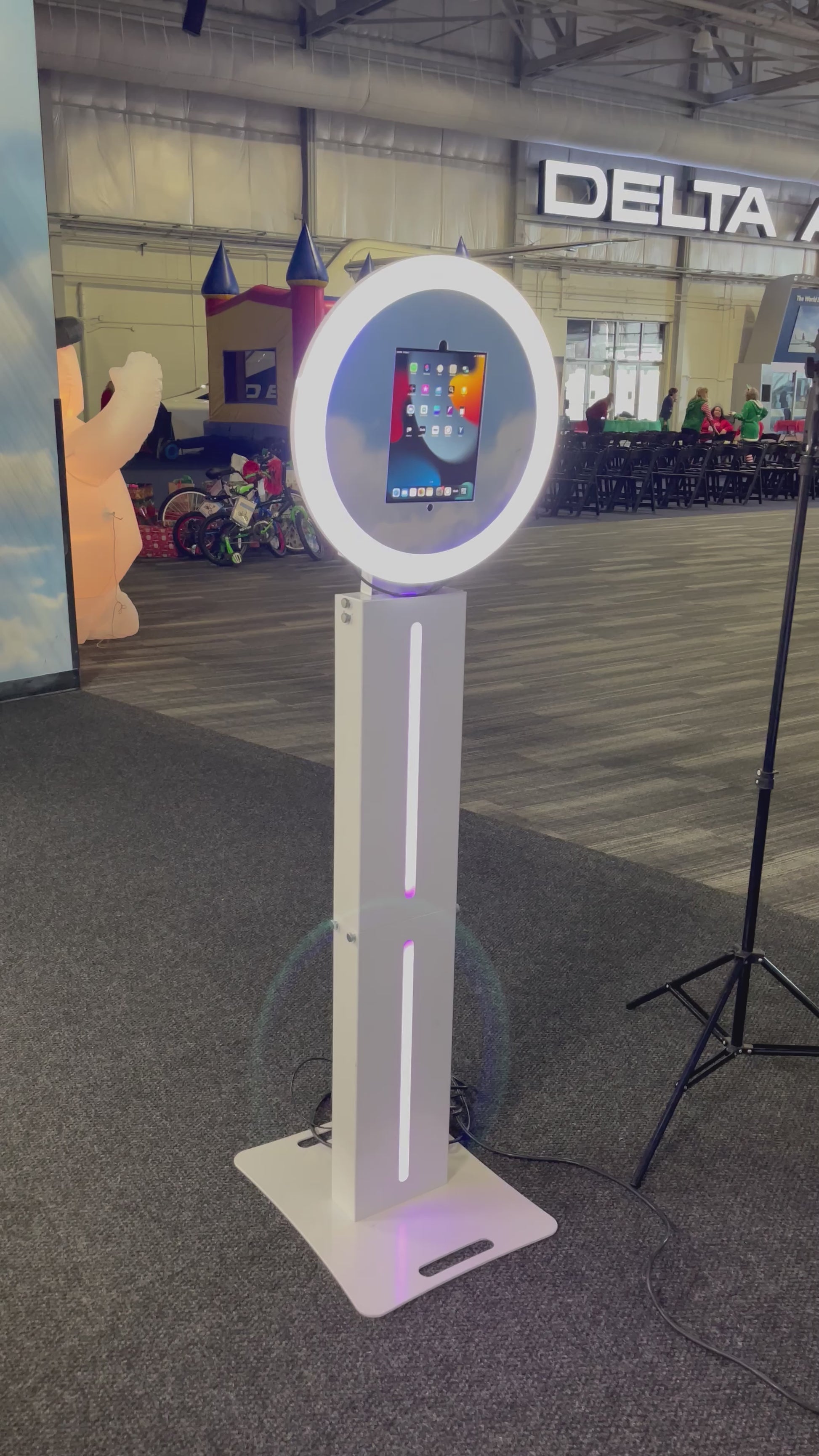 The Explorer Pro Booth Offers Versatility & Is Perfect For Small Spaces. You Can Bring The Booth To The Dance Floor Or Attach The Stand For A Traditional Experience. Also Wide Base Offers Branding Space For Clients.